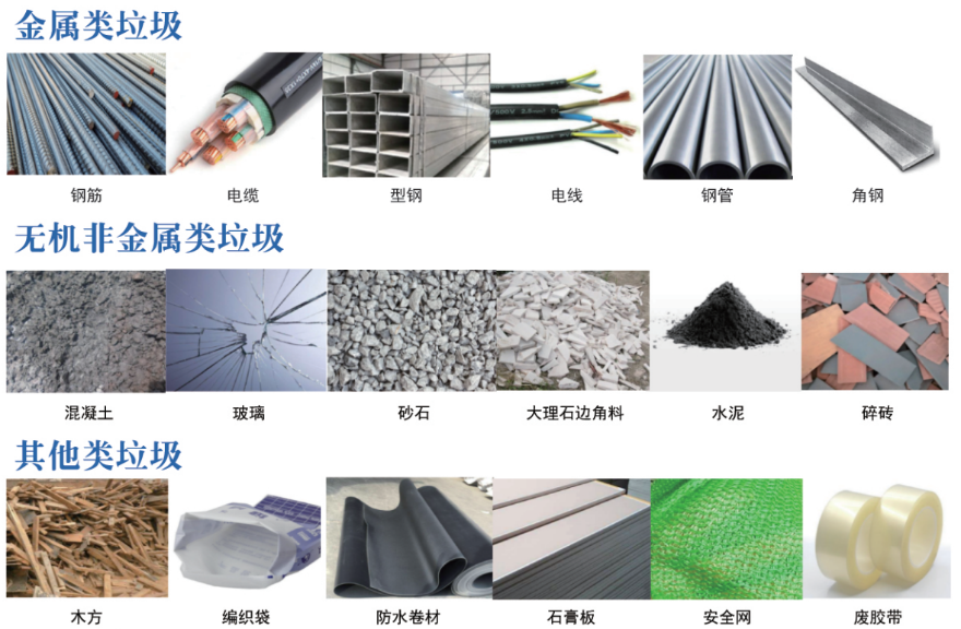 ()建筑垃圾源头分类规划坚持以末端处理为导向,对建筑垃圾进行细化分类处理,进一步推动建筑垃圾资源化利用。工程渣土主要分类为耕植土类、建筑原材料类和其他可利用类;工程垃圾及装修垃圾主要分类为金属类、无机非金属类和其他类。